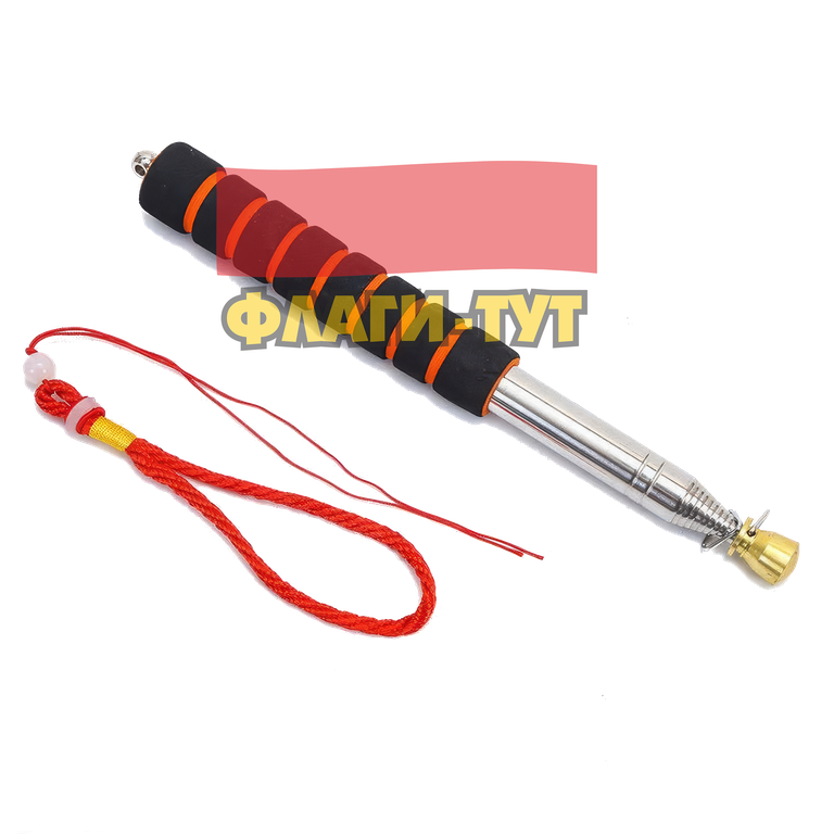 Вес до 120 гр. Держатель для флага имеет надежную коленчатую конструкцию из полых нержавеющих трубок, мягкую губчатую ручку и петельку для удобства ношения на запястье. На такой флагшток можно прикрепить и флаг с люверсами, и флаг с карманом для древка.