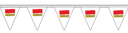 Флажная лента: с печатью Материал: Полиэфирный шелк Размер: 15*22 см с расстоянием 10 см |